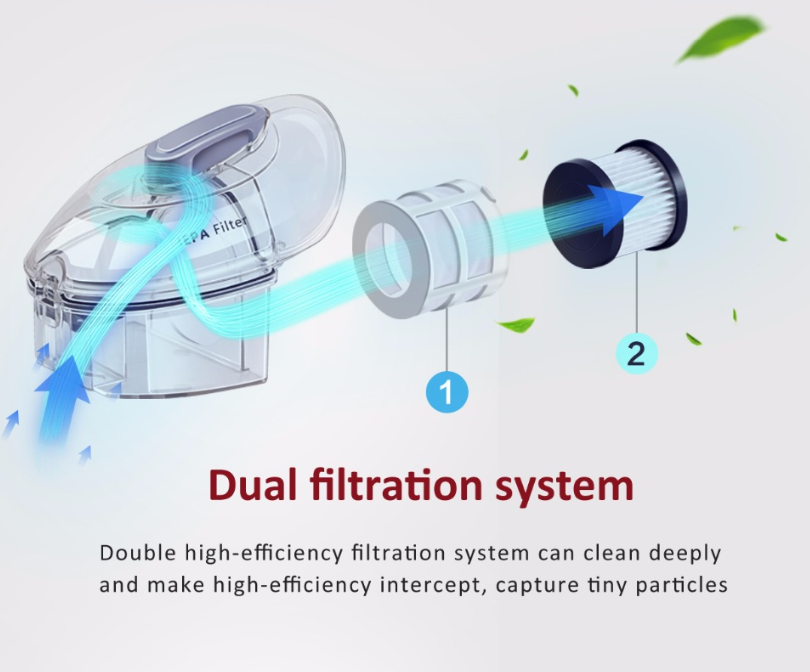- Double high-efficiency filtration system can clean deeply and make high-efficiency intercept, capture tiny particles