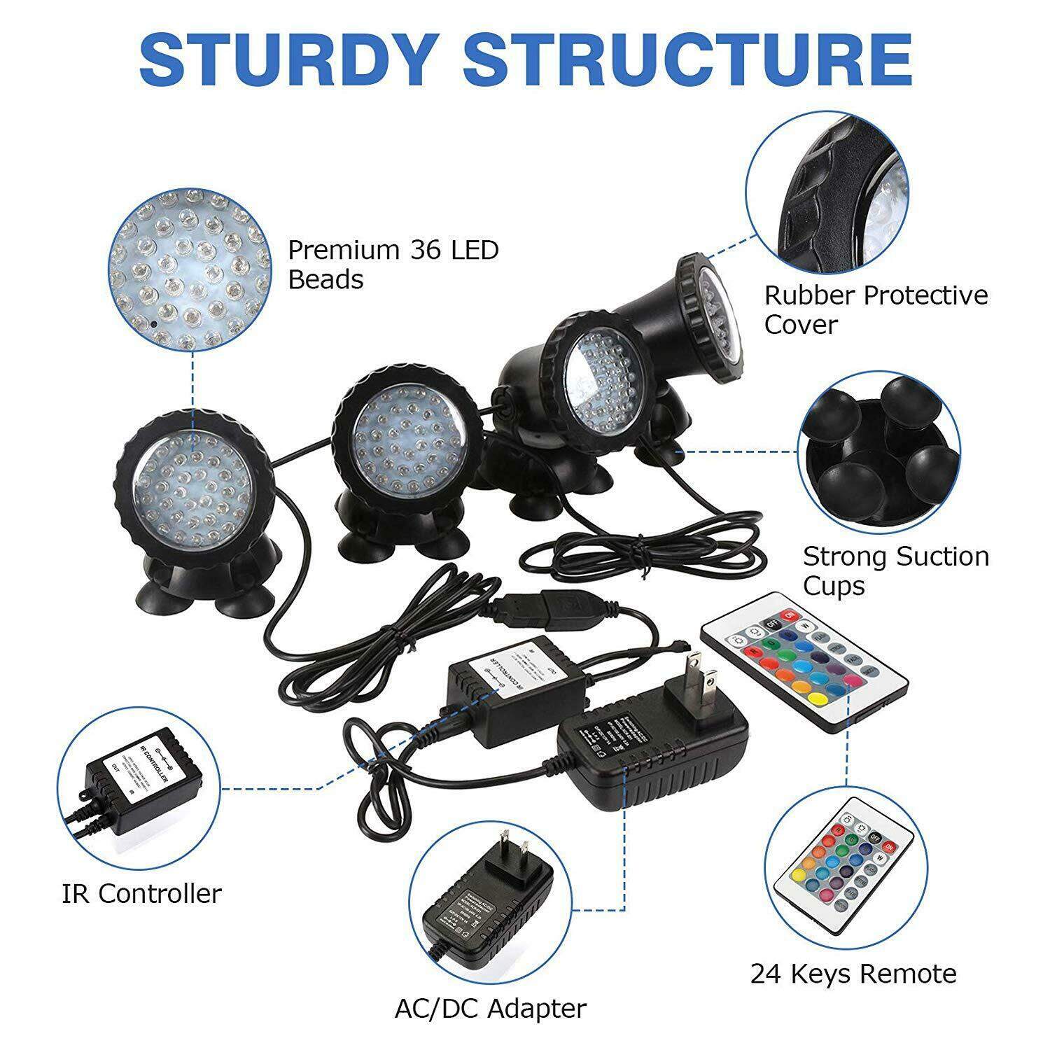 Ranpo LED Underwater Lights Waterproof Lamp RGB 36leds Underwater Spot Light for Swimming Pool Fountains Pond Water Garden Aquarium RP1032