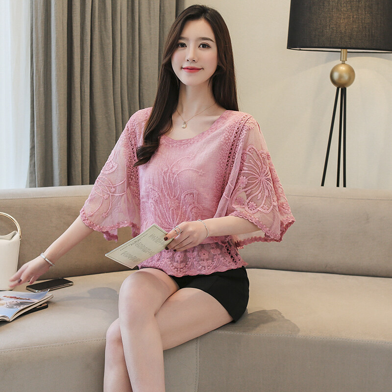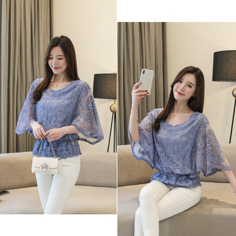 Vanessawang Womens Chiffon Blouse Lace Shirt Slim Casual Blouses Half Sleeve Women Midi Top