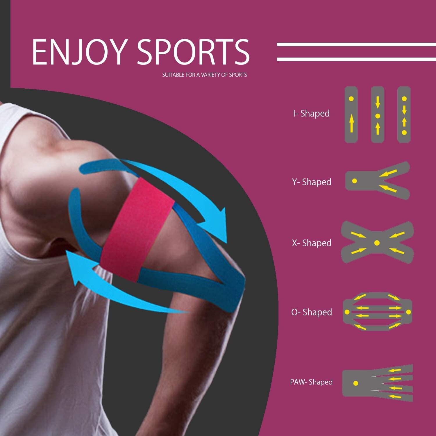 Kinesiology Tape Kinematic Tape Muscle Patch, Sports Tape Supports and Protects Muscles, Knees, Shoulders and Plantar Fasciitis,Hypoallergenic, Breathable, Professional & Olympic Choice