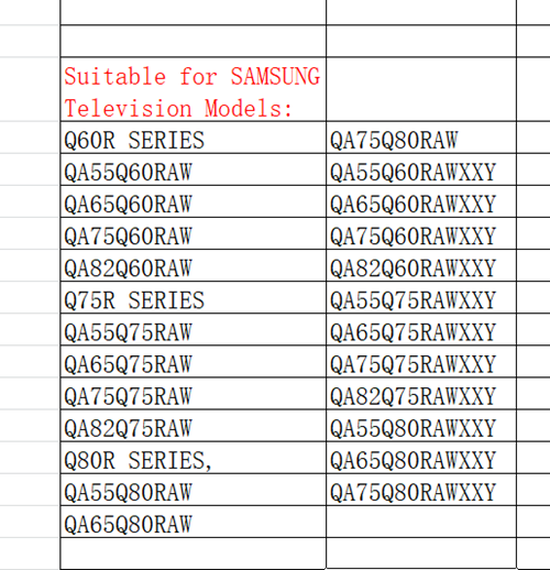 Suitable for SAMSUNG Television Models: