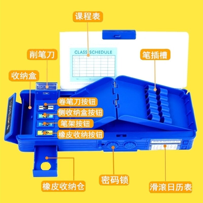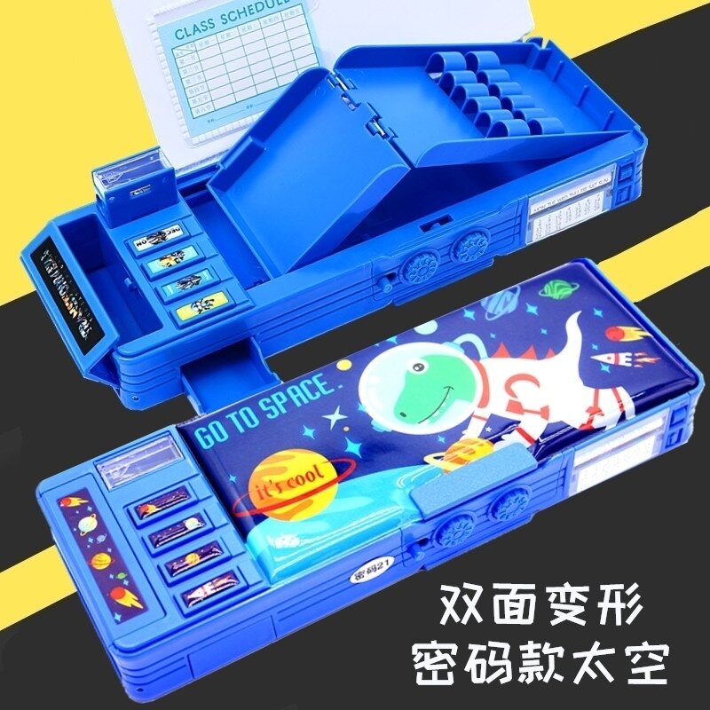 Multifunctional Password Lock Stationery Box Transformer Pencil Case Primary School Student Male Creative Deformation Personality Kindergarten Children Boys and Girls Grade 1-3 Boys and Girls Plastic