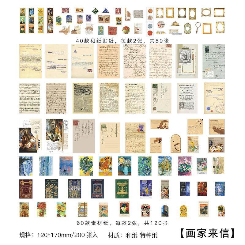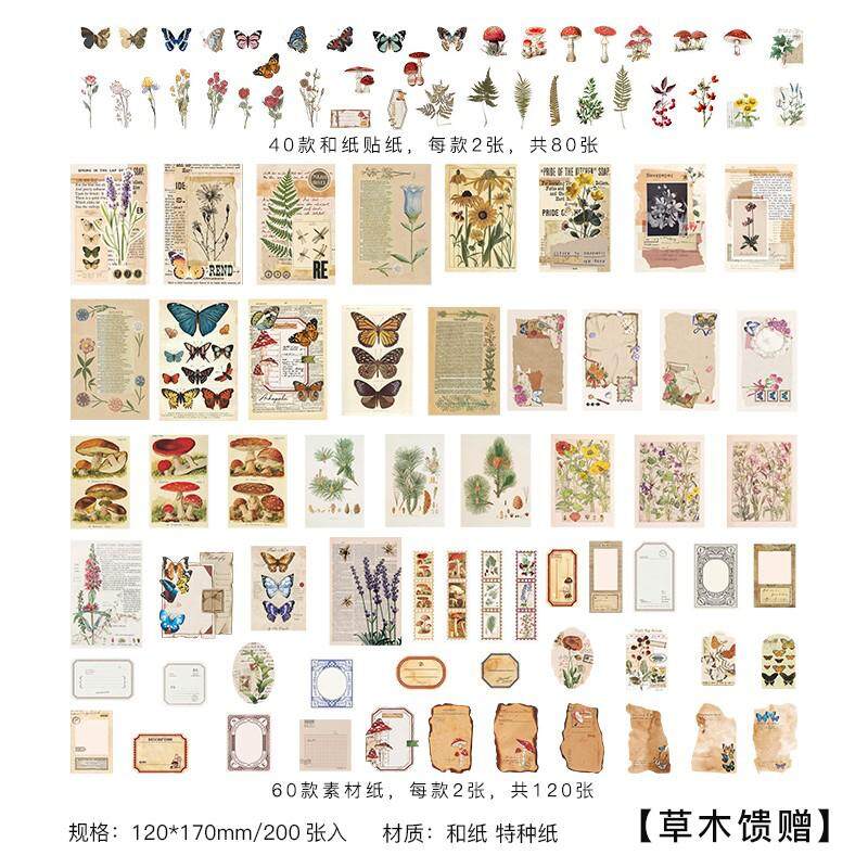 200 Pcs Scrapbooking Supplies Pack For Journaling Diy Vintage Scrapbook Stickers Kit With Decorative Nature Retro Collection