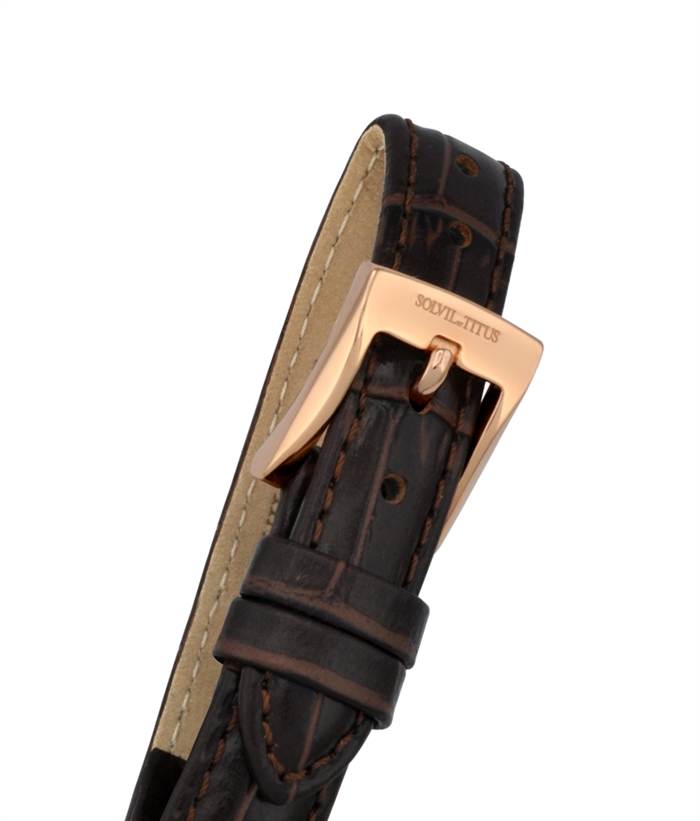Solvil et Titus Classicist Women's Small Second Quartz in Silver White Dial and Dark Brown Leather Strap W06-03255-003