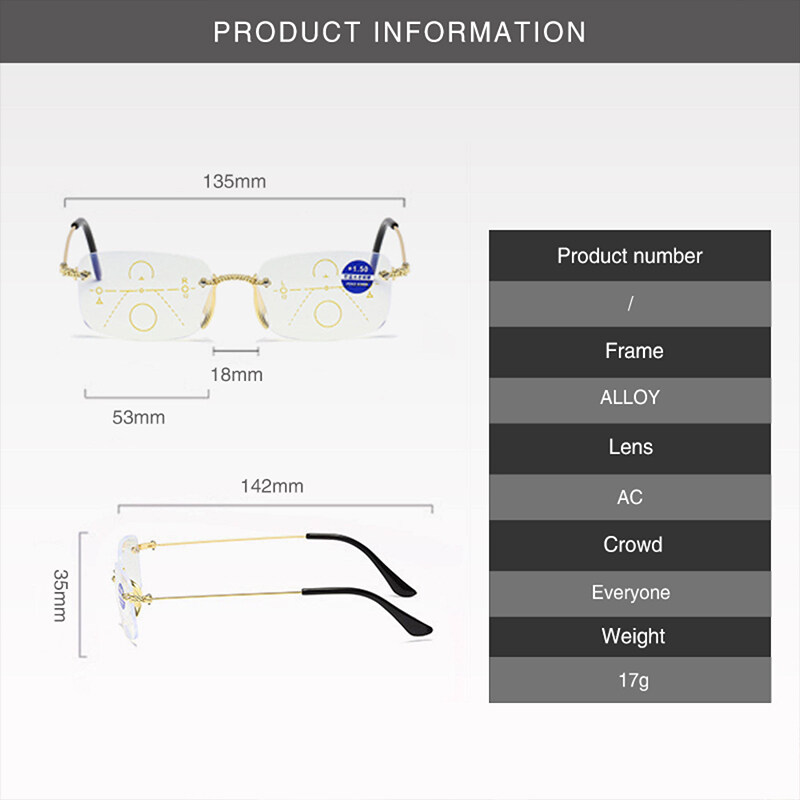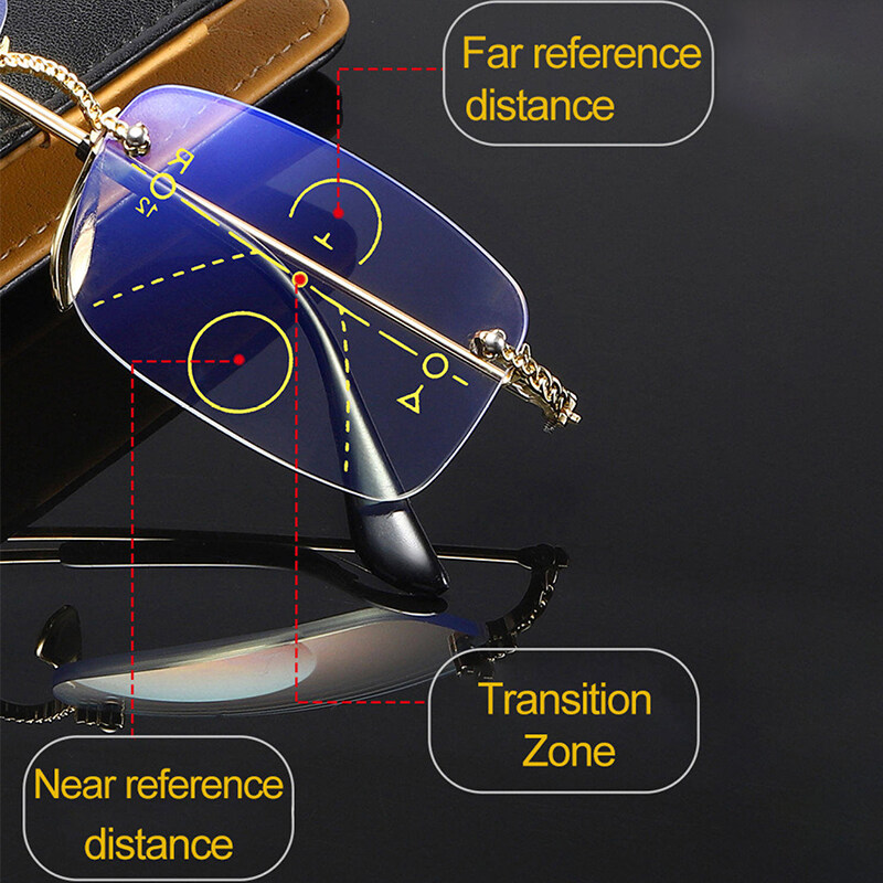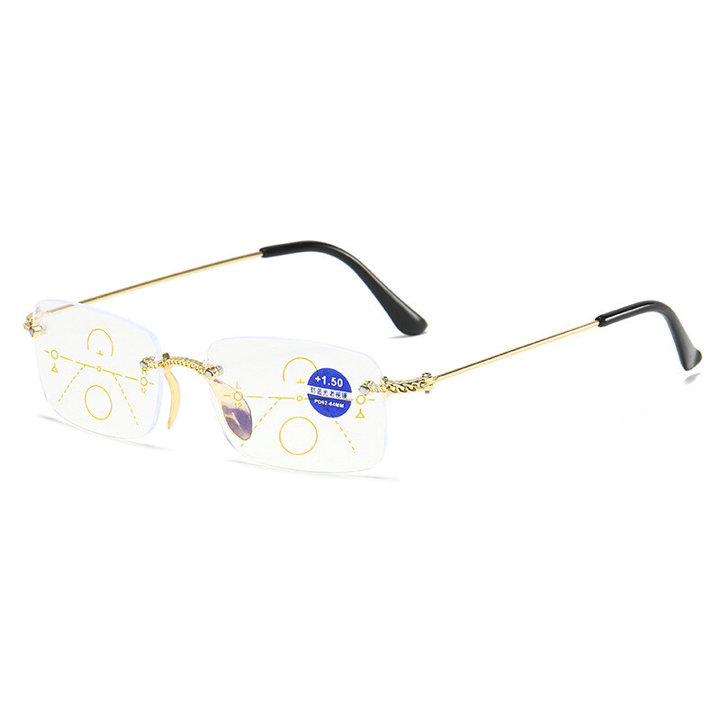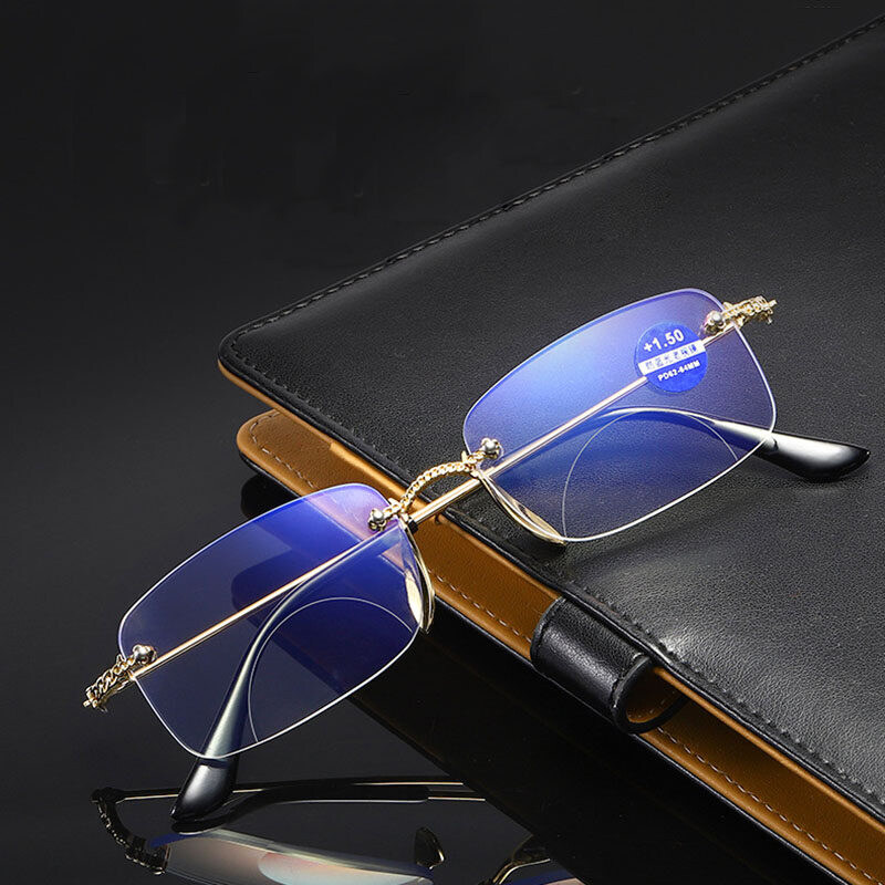 Anti-Blue Light Bifocal Reading Glasses Both Far and Near Progressive Multi-Focus Reading Glasses Frameless Trimming Flat High Quality Eyeglasses PTQ
