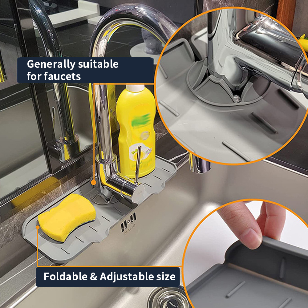 Type: Silicone Faucet Drying Mat Material: High quality silicone Color: Black/Grey/Orange Product size: 36*14cm Net weight: 145g