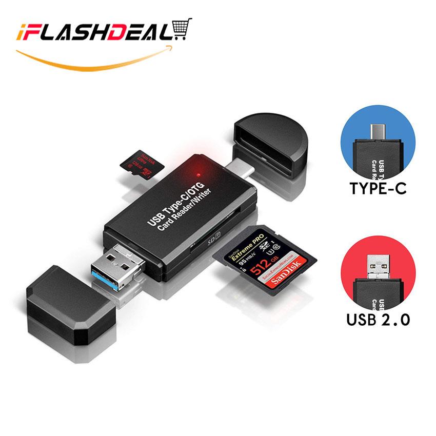 iFlashDeal SD/Micro SD Card Reader Writer USB 3.0 Memory Card Reader OTG Adapter Viewer Micro SD/TF Compact Flash Card Reader with 2 in 1 USB/Type C