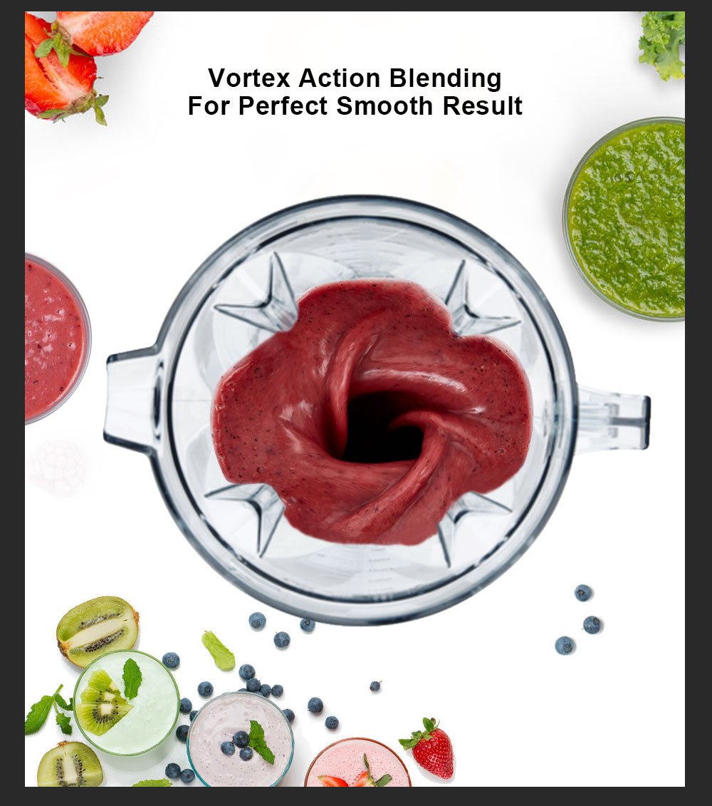 : The peak 2200W (rated 1500W) commercial-grade motor with hardened 6 stainless steel can easily break ice cubes and frozen fruits, it makes the large ice cube to small slush. Benefit from the WHOLE food by thoroughly pulverizing the ice cubes, frozen fruits, vegetables, seeds, nuts and much more.